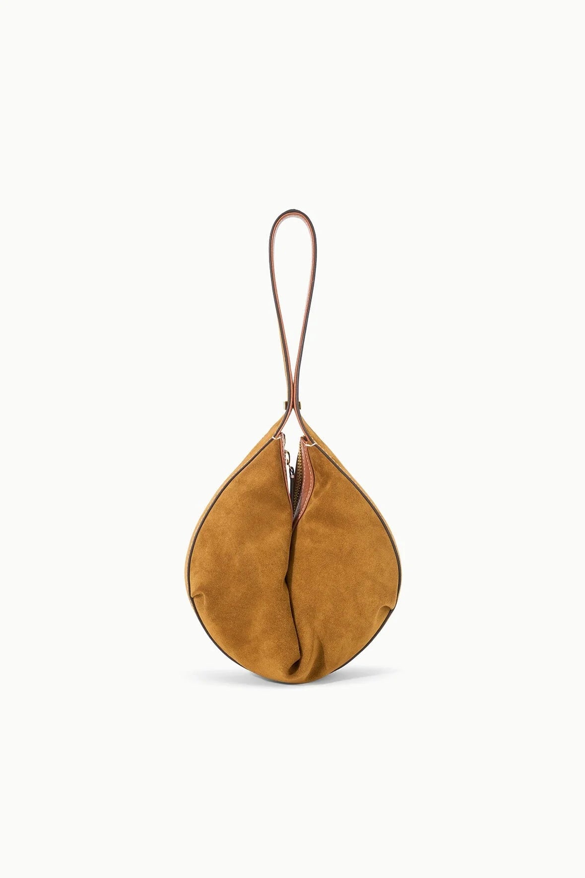 The Demy Shoulder Bag is a chic convertible bag that can be worn over the shoulder or hand held. It features signature hardware clasp on the strap to convert the shape to a handheld pouch. This style features a suede leather body, a top zipper, and signature hardware.